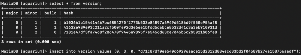 insert into version values (0, 3, 0);- adapt major, minor and build number accordingly.